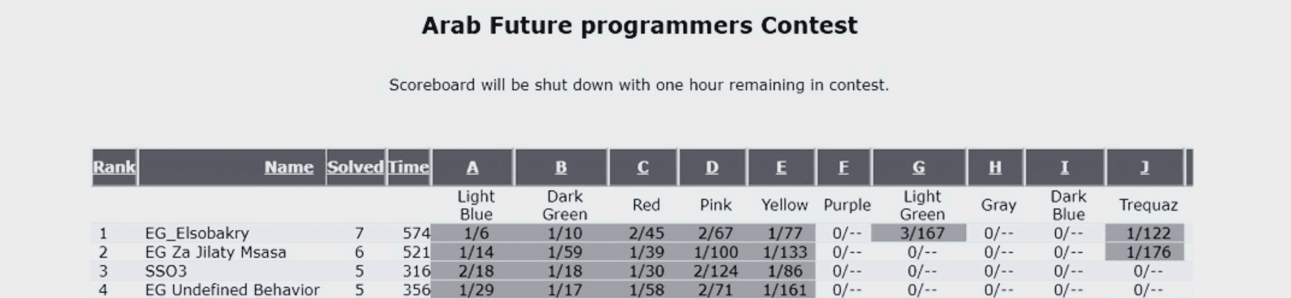 This contest had a blind hour. No one could see what you solved during the last hour. Only you and your teammate knew.